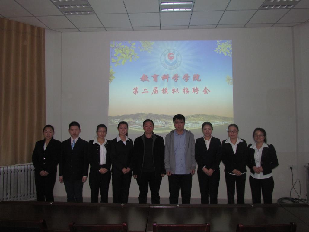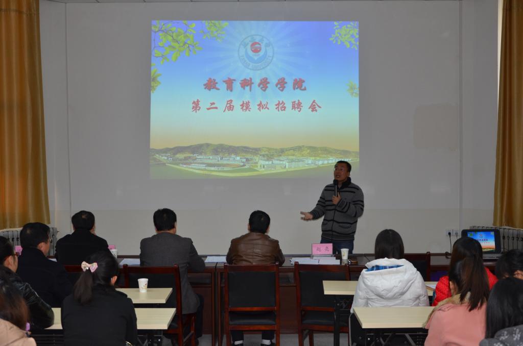 近年来,大学生的就业形势日益严峻,为了提高毕业生的面试水平,使毕业生在招聘面试中表现的更为出色,11月13日下午,我院在第一阶梯教室举办了第二届模拟招聘会。教科院党委书记闫世笙、腾博官网诚信为本专业服务附属中学副校长王华、腾博官网诚信为本专业服务就业培训科科长牛保明、教科院科研与研究生秘书冯晓江及照亮晨读导师赵亮担任了模拟面试官。我院高年级学生在现场进行观摩学习。
