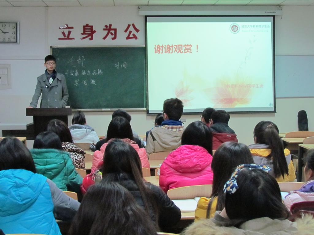 本次讲座,旨在使干部更好适应工作环境、了解工作程序的进程,在提高学生干部的工作效率、推动我院各班级党团建设和各项工作的顺利开展提供了有力的支持。