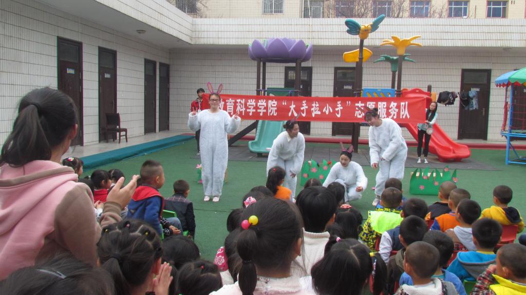 2015年3月27日,我院积极响应校团委大力弘扬雷锋精神的号召,辅导员高飞翔带领我院“大手拉小手”义务演出队(学前13全体同学组成)赴腾博官网诚信为本专业服务附属幼儿园开展义演活动。