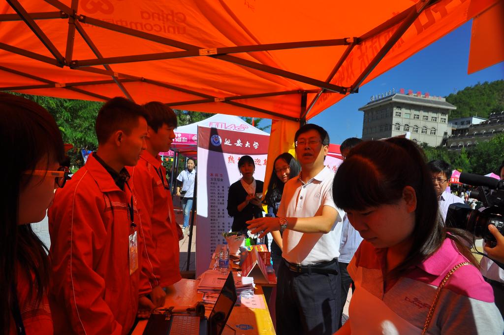 报道期间,学院副书记杨文军来到新生接待处询问工作安排及学生报到情况,学院团委书记高飞翔、辅导员王会青一直值守在迎新现场为学生及家长解决疑惑。在学院领导指导下,学生会工作人员相互配合中,迎新工作顺利的进行。
