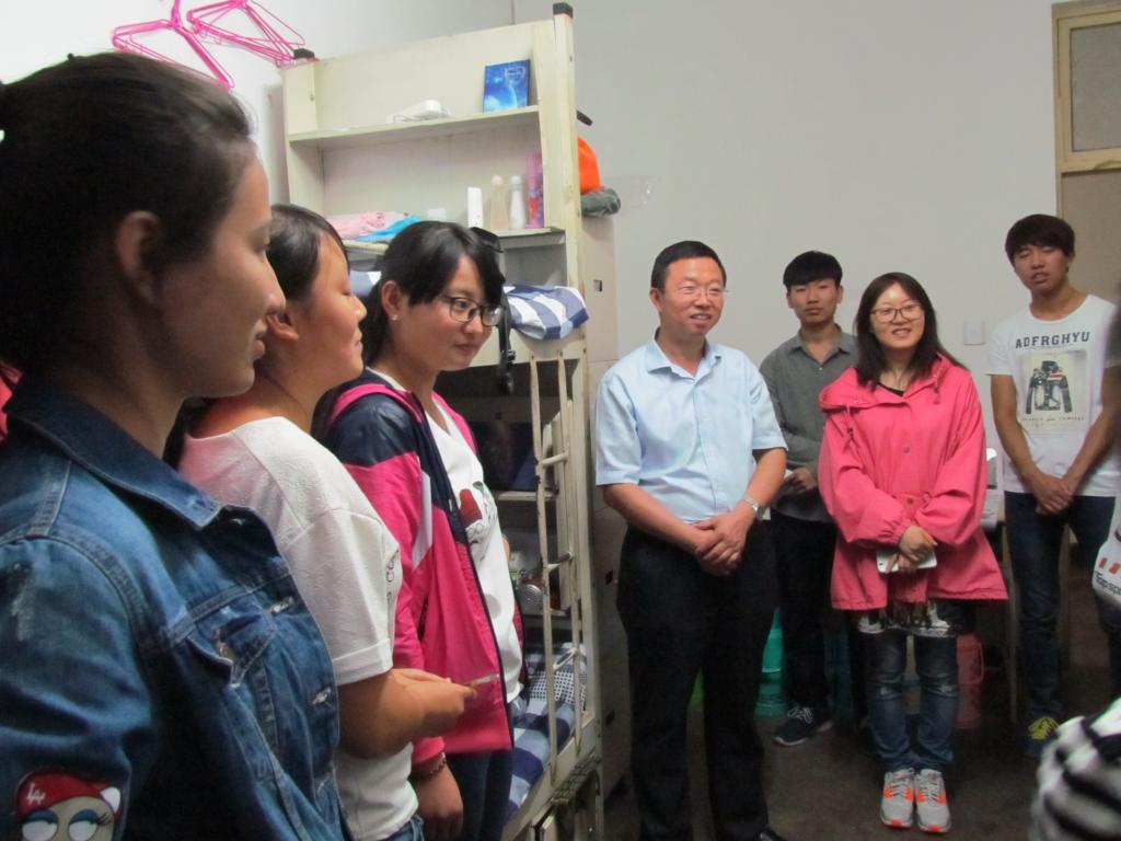 9月13日下午,为使新生对学校产生认同感和归属感,我们组织新生参观了我校校史馆。尽快熟悉校园,我院组织2015届全体新生从窑洞广场出发,由学生会负责人员带领,为新生详细介绍学校的各栋建筑,使他们了解学院办公室、图书馆、教学楼的具体位置。晚上,由院长张社争、副书记杨文军、副院长魏继宗和学院老师组成的慰问团在当天深入宿舍看望新生。师生们如家人般交流,气氛融洽,话题也由地域差异等大方面到学生生活细节等小方面。学院领导在讲解学院工作的同时,也提醒新生注意温差变化与在校和外出安全,使他们感受到来自院领导的关心与重视。