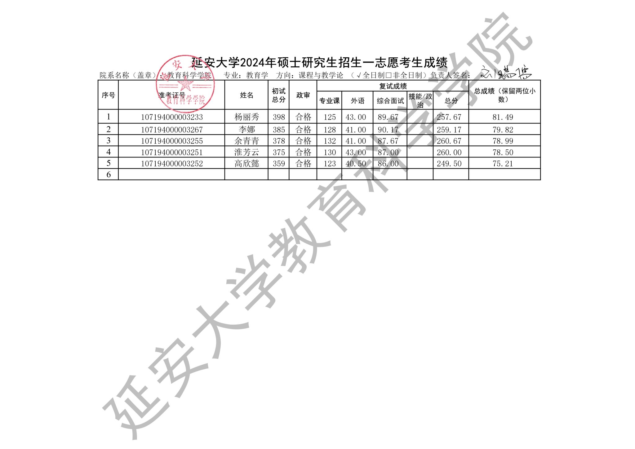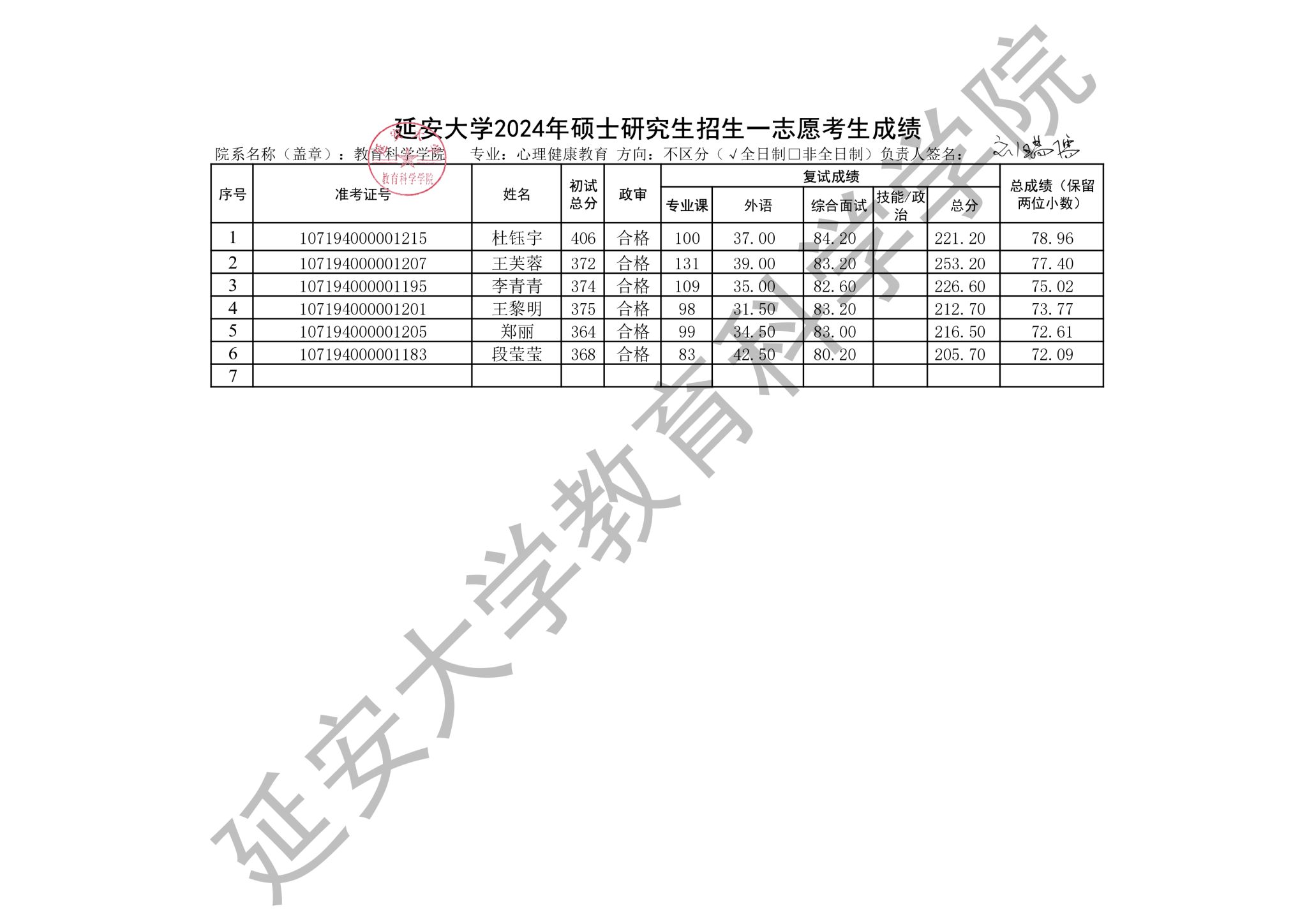 依据我院2024年硕士研究生复试工作实施方案,于2024年3月29日至3月31日的一志愿考生复试工作已圆满结束,现将具体复试成绩予以公示,公示时间为十个工作日,于公示期间如有疑议,请联系: