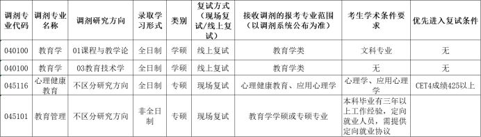 教育科学学院2024年心理健康教育专业和教育管理专业硕士研究生调剂复试采取现场复试形式;